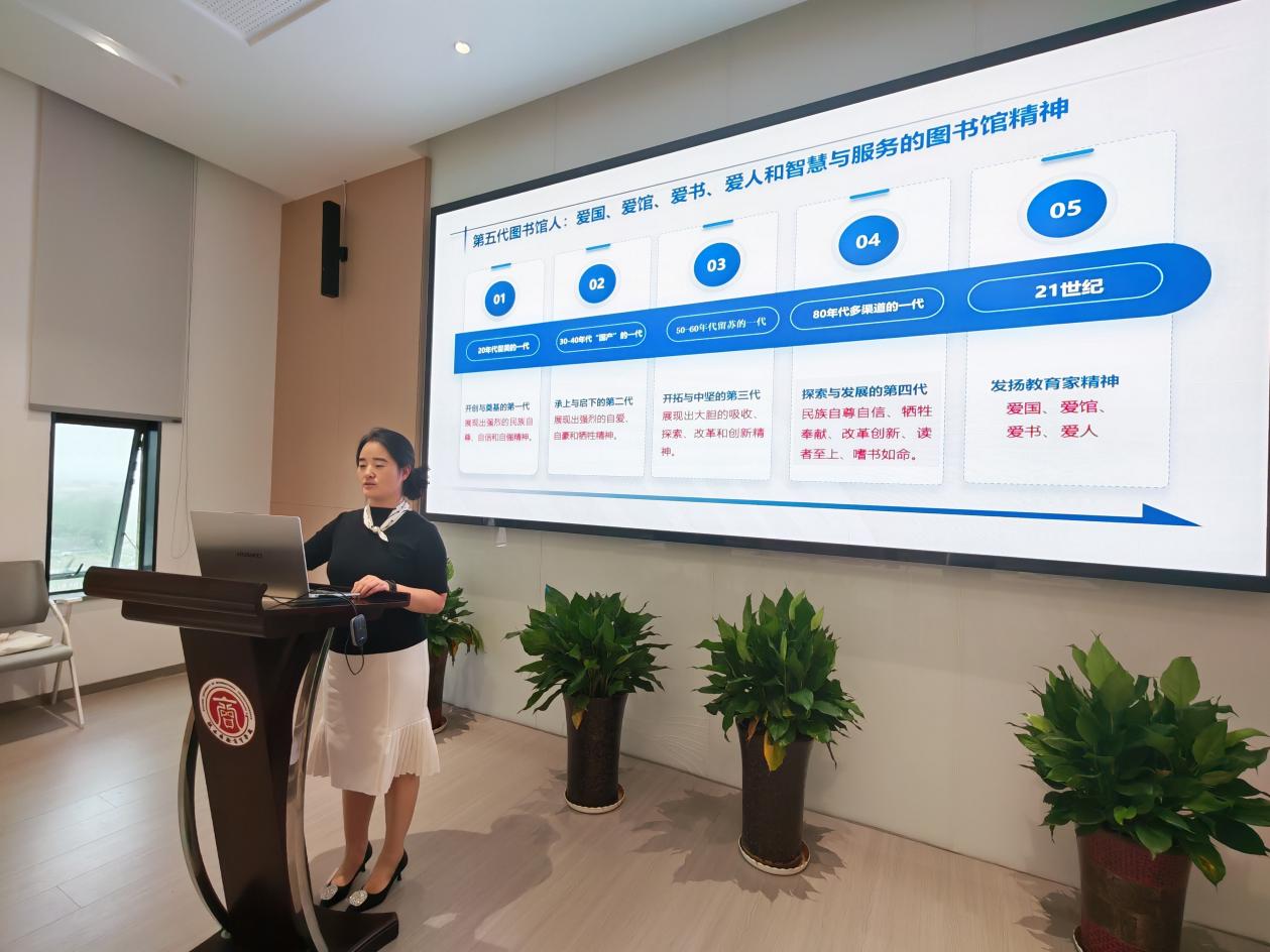培训会上,图书馆文献部主任赵倩就图书馆人素养和职责进行了分享交流,重点分享了“五代图书馆人”在不同时代背景下的责任和精神,使大家对新时代图书馆人“爱国、爱馆、爱书、爱人”的精神有了更加深刻的认识和理解。通过培训会,大家将图书馆人精神融入到师德教育中的意识进一步提高。
