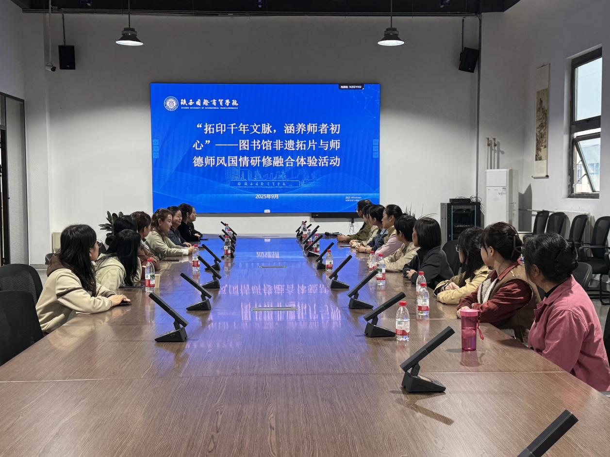为拓宽师德师风建设场景,深化非遗文化传承与国情认知教育的融合实践,9月22日下午,图书馆创新联动新华数字文化教育体验中心,组织全体馆员开展“拓印千年文脉 涵养师者初心”——图书馆非遗拓片与师德师风国情研修融合体验活动,让图书馆师德培育从理论课堂延伸至多元实践场景,厚植图书馆人文化底蕴。