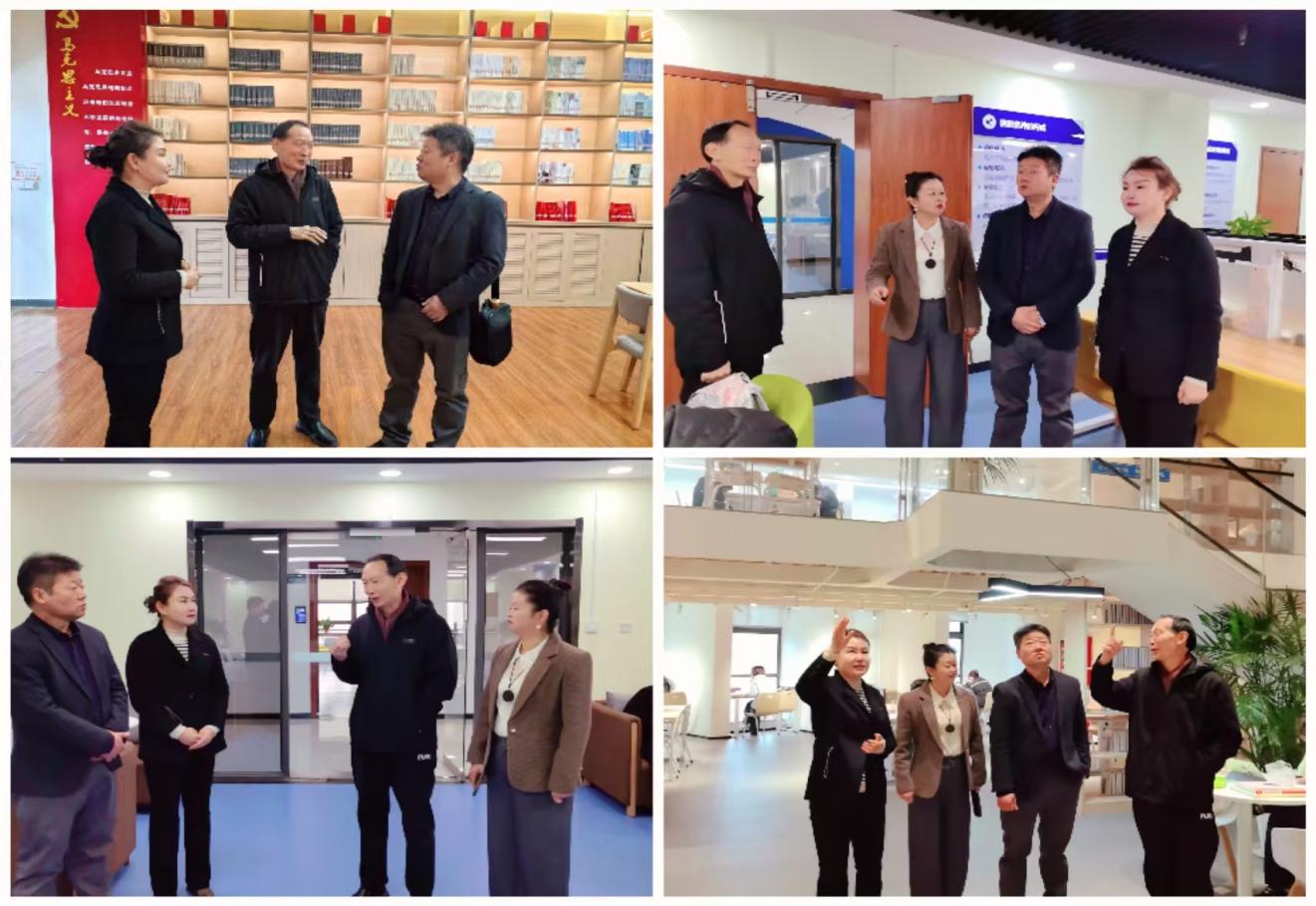 仪式结束后,周敏和杨雪陪同王昌利教授、颜永刚教授参观了图书馆,并对图书馆的基本情况、馆藏布局、特色空间等进行了简要介绍。